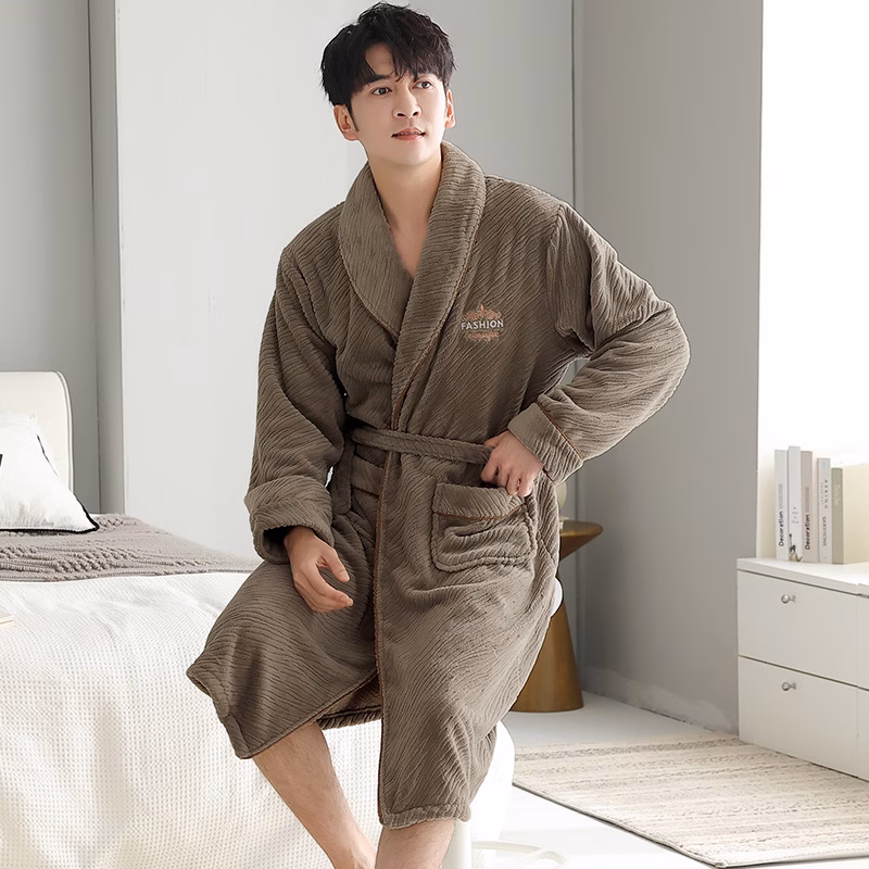 Áo Choàng Tắm / Ngủ Dáng Dài Vải Flannel Lông Cừu Dày Thời Trang Thu Đông2022 Mới Cho Nam