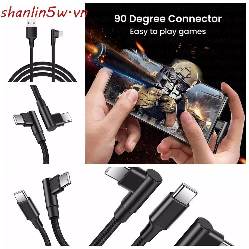 🔥 Cáp SHANLIN 90 Độ Loại C, Dây Sạc Nhanh PD Dây Nylon Braid 60W, Cáp Dữ Liệu Sạc Truyền Dữ Liệu Sạc Nhanh 90 Độ Khuỷu Tay Đôi Loại C Đến C Cáp Máy Tính đang giảm giá!