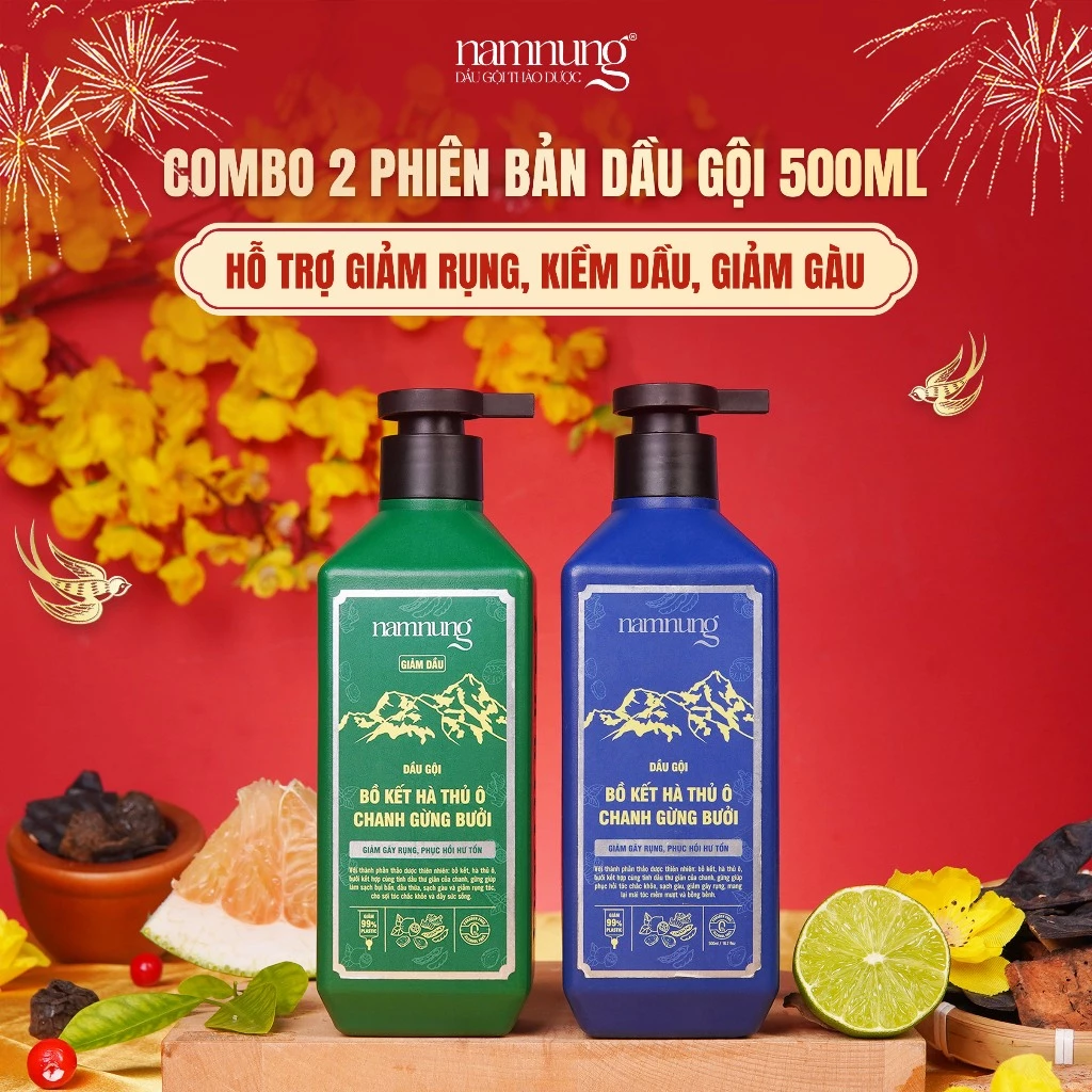 🔥 Combo 2 Chai Dầu Gội Thảo Dược Bồ Kết Hà Thủ Ô NAMNUNG Bản Kiềm Dầu Và Bản Thường 500Ml đang giảm giá!