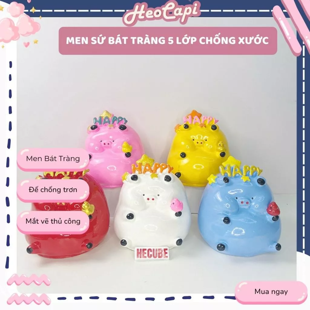 Trong quá trình tìm kiếm các mẫu heo đất vừa dễ thương, vừa tiện lợi, Lợn Đất Tiết Kiệm Tiền Ống Heo 18cm HeoCapi Happy nổi bật với thiết kế “tráng men 5 lớp sứ Bát Tràng” – một sự kết hợp giữa nghệ thuật truyền thống và tính năng hiện đại. Dưới đây là một số đặc điểm nổi bật: