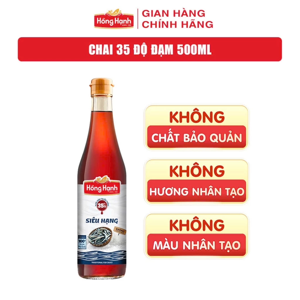 🔥 Nước mắm Truyền thống Phú Quốc Hồng Hạnh Siêu Hạng 35 độ đạm dung tích 500ML – Chấm, kho đúng điệu đang giảm giá!