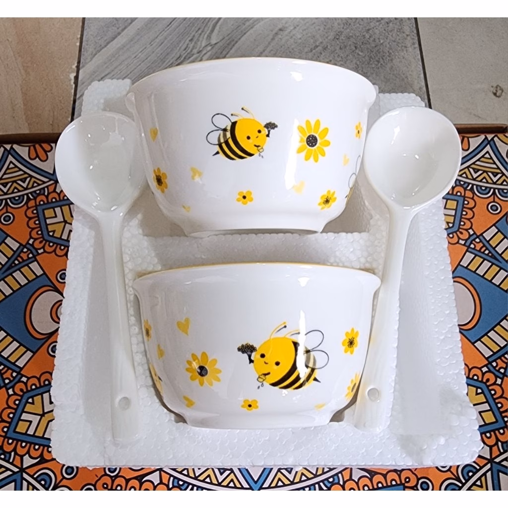 - Về giá cả: Với mức giá chỉ 44.900 VNĐ cho một set 2 bát và 2 thìa, bát sứ hình ong vàng là một lựa chọn rất hợp lý.