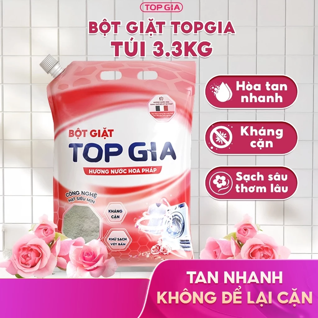 🔥 Bột Giặt TOPGIA Hương Nước Hoa Pháp 3.3kg Hạt Nano Kháng Cặn, Đánh Bay Vết Bẩn, An Toàn Da Tay đang giảm giá!