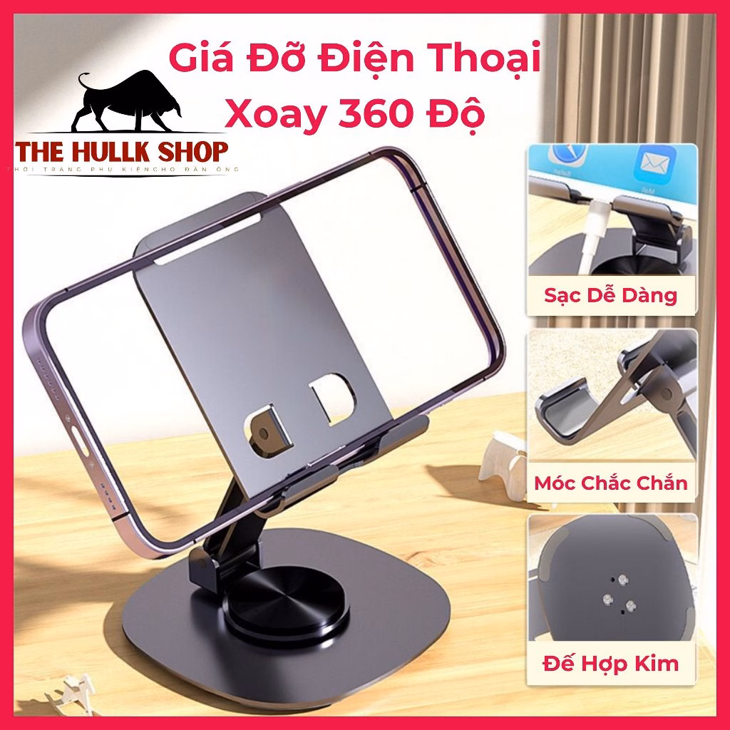 🔥 Giá Đỡ Điện Thoại Xoay 360 Độ Để Bàn Thehullkshop Hợp Kim Nhôm, Chắc Chắn, Cứng Cáp đang giảm giá!