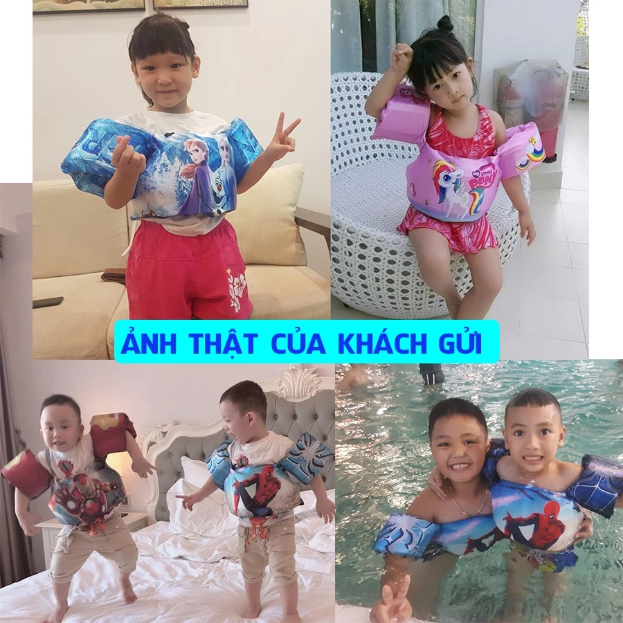 - Phao bơi tay liền thân: Loại phao này được thiết kế để ôm lấy thân người trẻ em, giúp giữ đầu nổi trên mặt nước.