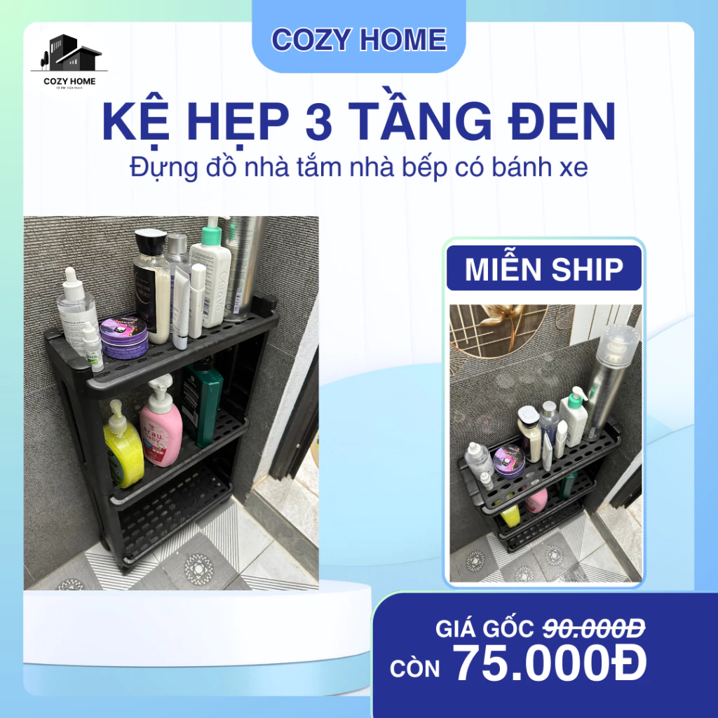 🔥 Kệ Cozy Home 3 Tầng Màu Đen Có Bánh Xe Kệ Đa Năng Phòng Tắm Nhà Bếp đang giảm giá!