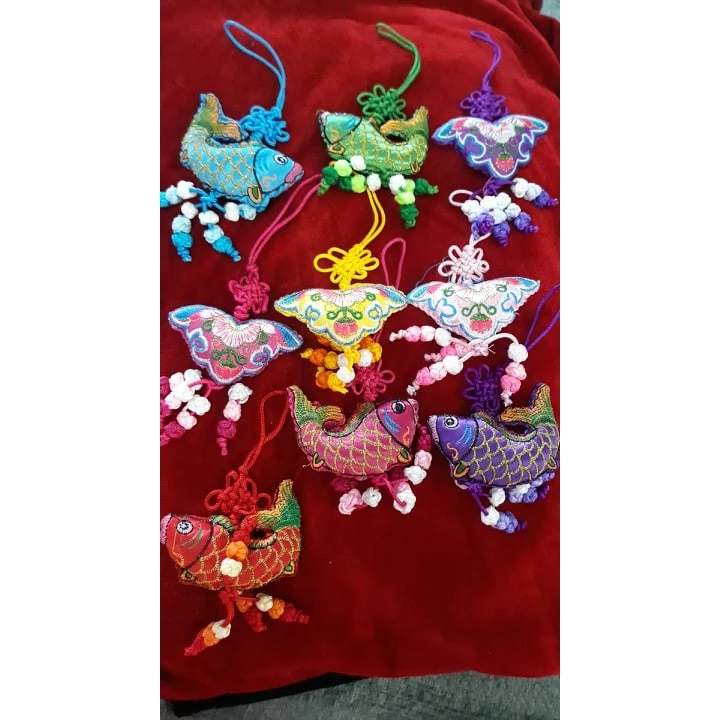 Móc khóa hình cá chép, con bướm thổ cẩm may mắn