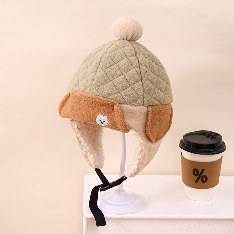 - Mũ len tai gấu: Thiết kế dễ thương, có tai gấu có thể gập lên hoặc gập xuống, rất phù hợp cho các bé gái.