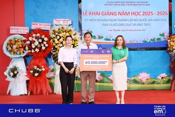 Nhân dịp khai giảng năm học 2025-2026, Công ty TNHH Bảo hiểm Nhân thọ Chubb Việt Nam (Chubb Life Việt Nam) đã tổ chức chương trình trao quà cho trẻ em có hoàn cảnh khó khăn trên cả nước. Sự kiện này là kết quả của sự hợp tác giữa Chubb Life Việt Nam và Quỹ Bảo trợ Trẻ em Việt Nam, nhằm mang đến niềm vui và động viên tinh thần cho các em trong mùa tựu trường.