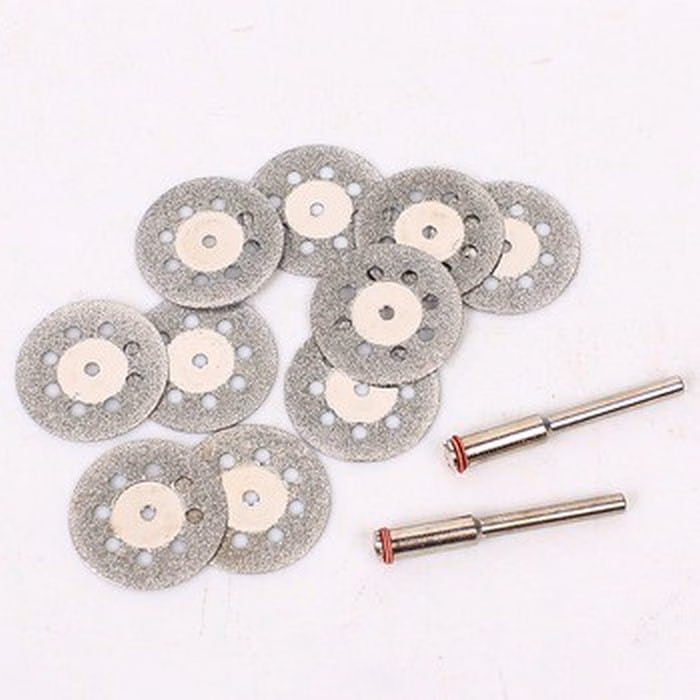 🔥 Bộ 10 lưỡi cắt mini phủ kim cương mini 30mm kèm 2 trục 3ly dùng cho máy khoan mài khăc mini đang giảm giá!
