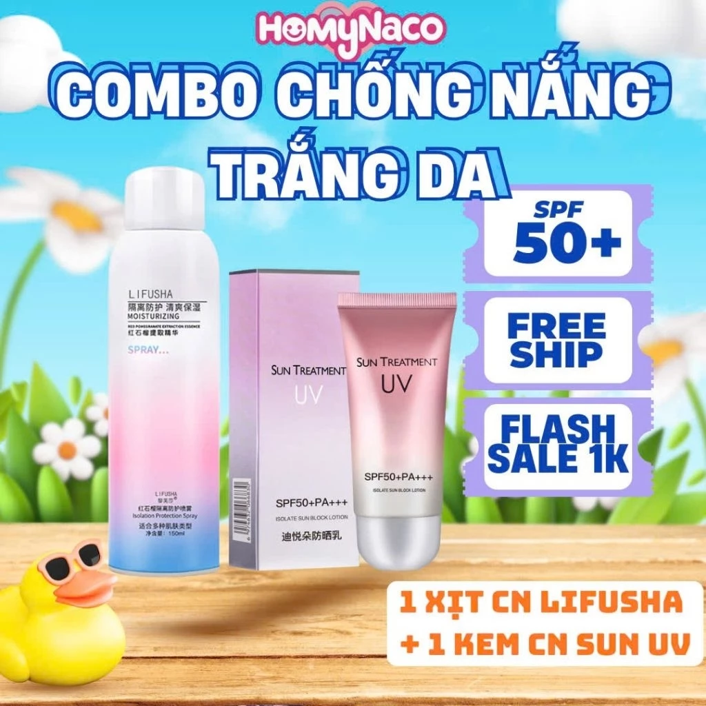 🔥 Combo Chống Nắng: Xịt chống nắng body Maycreate/LIFUSHA 150ml + Kem chống nắng chống tia UV Sun Treatment SPF50+ 60ml đang giảm giá!